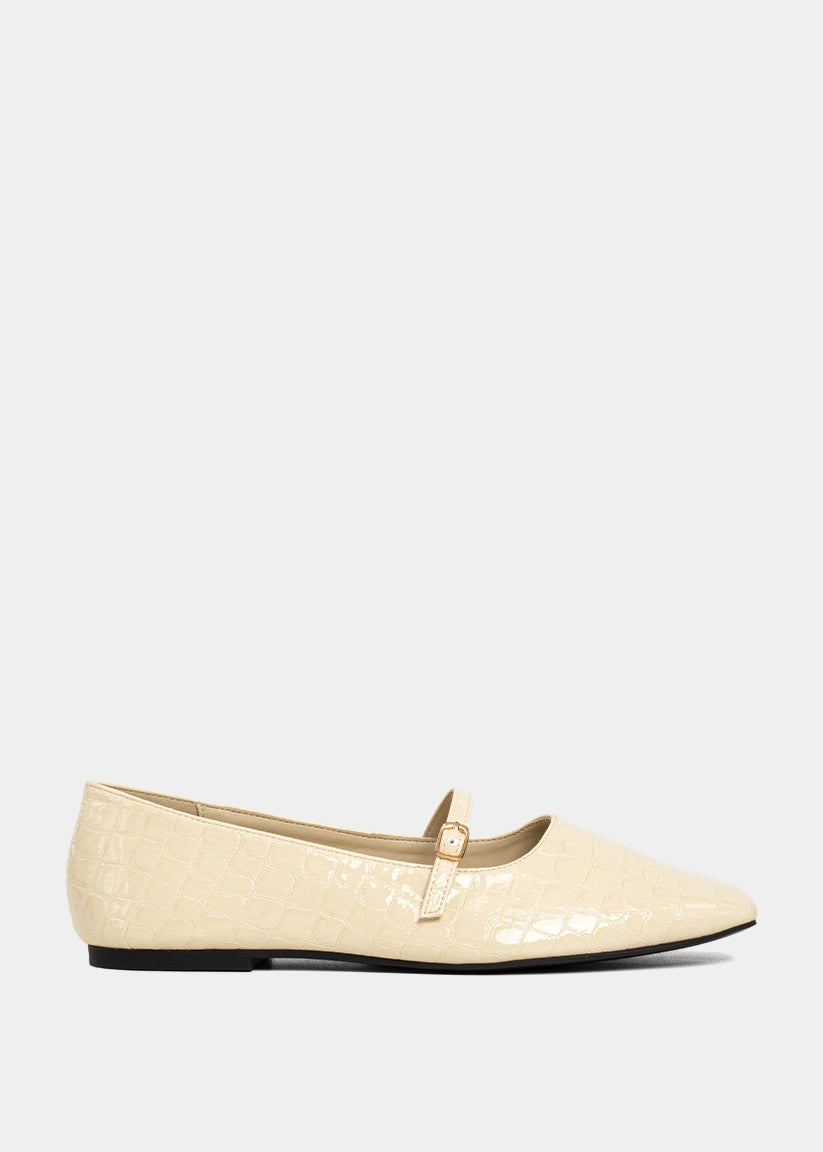 Chic meets classic in the ADELE flat, reimagined in sleek black croco. With its pointed toe, delicate Mary Jane strap, and glossy faux croc finish, this ballet flat elevates your everyday looks while keeping things effortless. Perfect for work-to-weekend wear, ADELE brings subtle drama and timeless polish in one versatile silhouette.