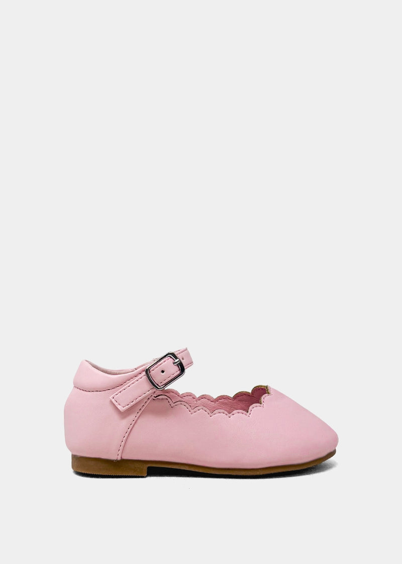 Sweet, polished, and made for twirling the AGATHA MINI in Pink is a classic Mary Jane with a charming scalloped edge that little ones will love. Designed with toddlers in mind, it’s crafted in soft faux leather with an easy buckle strap for a secure fit during playdates, parties, and everything in between. Timeless and versatile, it’s the perfect pair for special occasions or everyday cuteness.