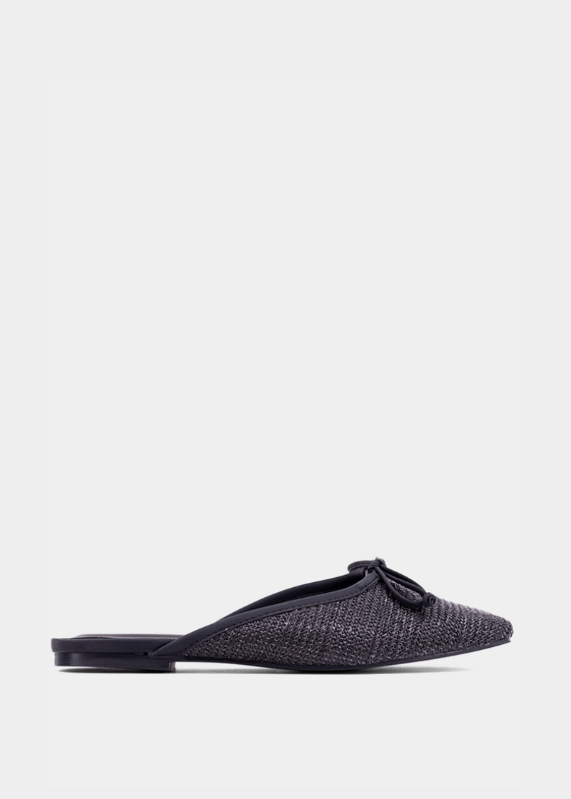A modern essential with an artisanal touch, the ANDREA in Black Woven delivers bold texture and classic charm. The intricately woven upper contrasts beautifully with its pointed toe silhouette, creating a flat that's both polished and effortless. A delicate bow detail completes the look, making it the perfect pairing for day-to-night versatility.