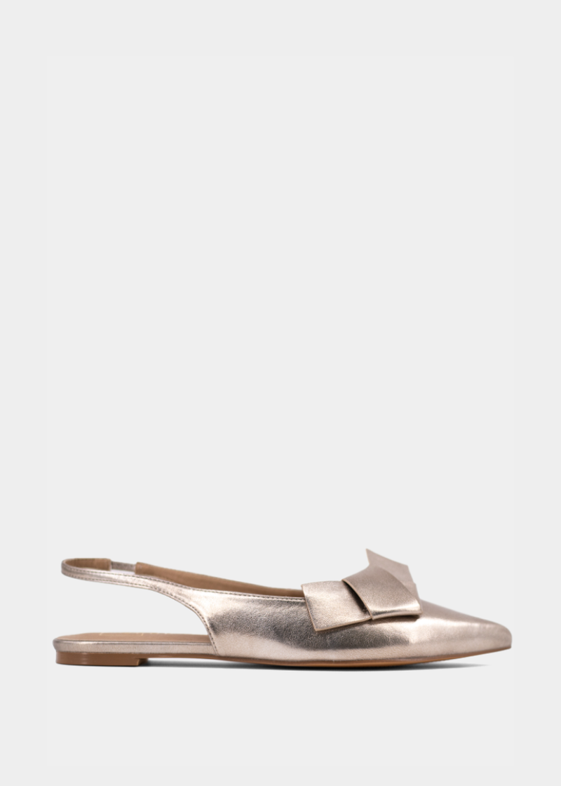 Step into shine with AUDREY in Gold. These glamorous slingback flats, made from luxe faux leather, feature a pointed toe and an eye-catching oversized bow. With their radiant metallic finish and cushioned insole, they blend fashion with comfort effortlessly. The flexible sole ensures easy movement, making them ideal for both day-to-night transitions. Elevate any outfit with a touch of golden elegance, perfect for when you want to make a statement.