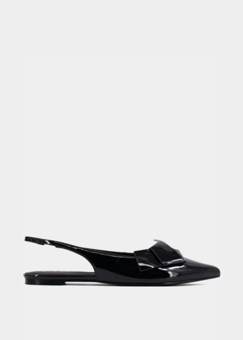 Timeless with a contemporary twist, the AUDREY slingback flat in black patent is the definition of understated elegance. Crafted from high-shine faux leather, it features a striking bow accent and a sleek pointed toe for a refined touch. With a minimal yet polished design, this versatile style transitions seamlessly from office chic to evening glam.
