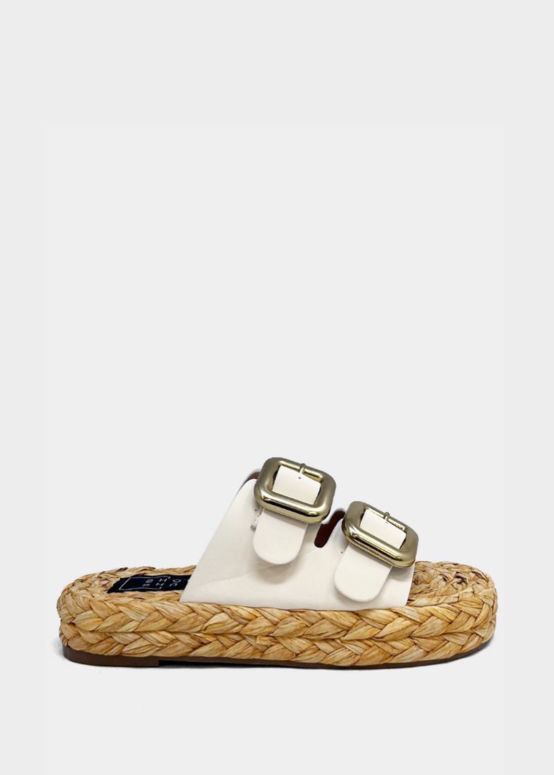 The BILLIE in Bone is the perfect fusion of effortless style and modern elegance. Featuring soft faux leather straps with oversized gold-tone buckles, this sandal is both refined and bold. The woven jute sole brings a touch of organic texture, while the subtle wedge effect provides a flattering lift without sacrificing comfort. Whether you're dressing up or keeping it casual, this versatile sandal is your go-to for a polished, on-the-go look.
