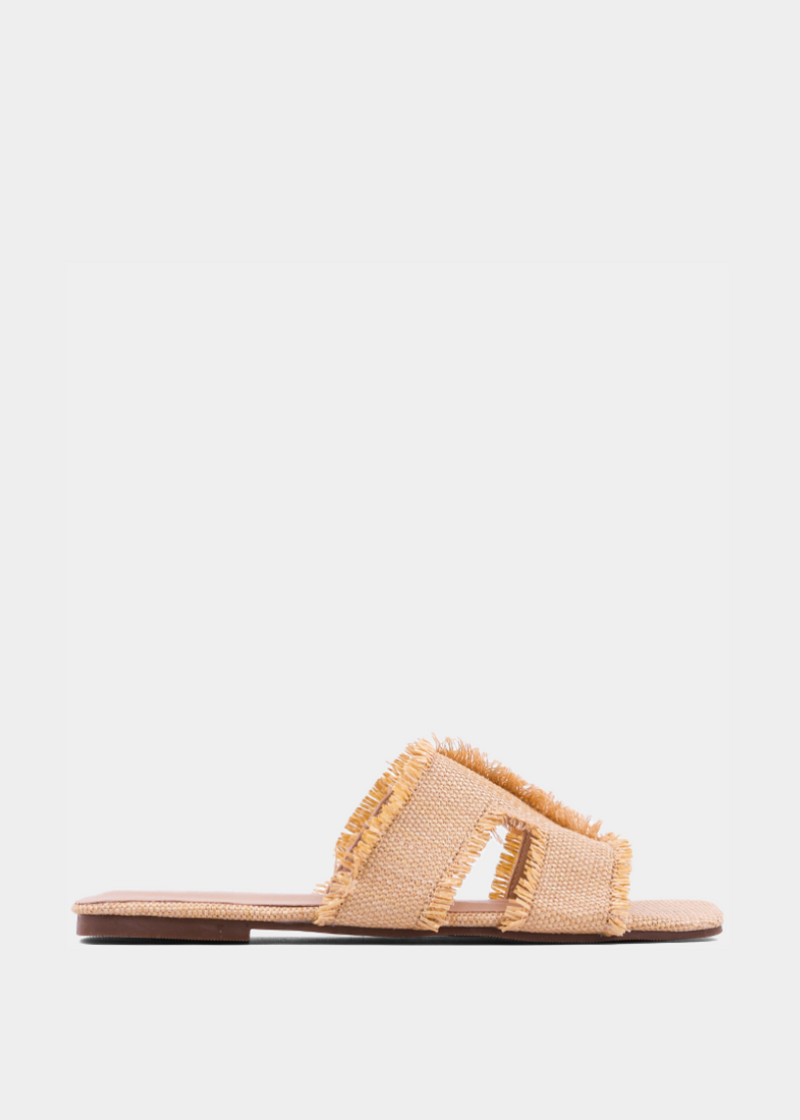 Breezy and effortlessly chic, the CHRISTINE slide in natural raffia is a must-have for spring and summer. Its crisscross woven upper and frayed edges add a carefree yet refined touch, while the cushioned insole ensures all-day comfort. Perfect for pairing with linen sets or flowy dresses.