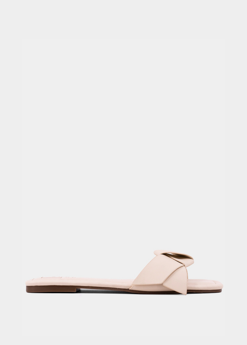The DIANA in Bone is a study in timeless chic. The soft neutral hue enhances its clean silhouette, while the bold structured bow brings an element of modern refinement. Designed in supple faux leather with a cushioned sole, this slide is effortless luxury for any occasion.