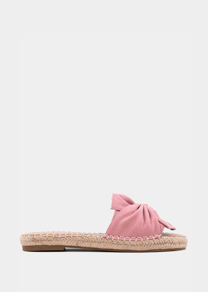 Step into effortless elegance with the DORIS flat sandal in Blush Suede. Featuring a soft knotted detail on a plush faux-suede upper and a braided espadrille sole, this sandal is your go-to for warm-weather style. Perfect for pairing with dresses, shorts, or jeans, the DORIS combines laid-back vibes with a polished touch. Light, comfortable, and oh-so-stylish, it's the ultimate sandal for sunny days.