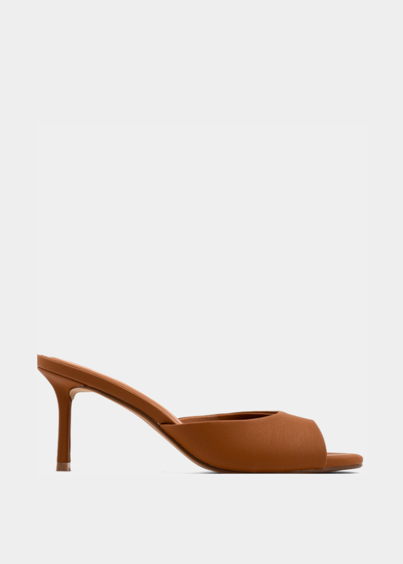 For a refined yet modern edge, the ELAINE heeled sandal in camel faux leather brings understated elegance to your wardrobe. Featuring a sleek stiletto heel and a minimalist peep-toe silhouette, this sandal is all about sophisticated simplicity. Pair it with earth-toned ensembles for an effortlessly polished vibe.
