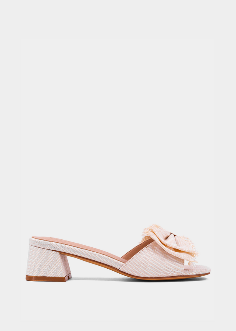 Step into effortless elegance with FRANCESCA, a chic heel featuring a woven-texture upper and a structured bow with frayed edges for a modern twist. The sculpted block heel offers the perfect lift, blending style and comfort seamlessly. Timeless yet trendsetting, it's your go-to for both breezy days and polished evenings.