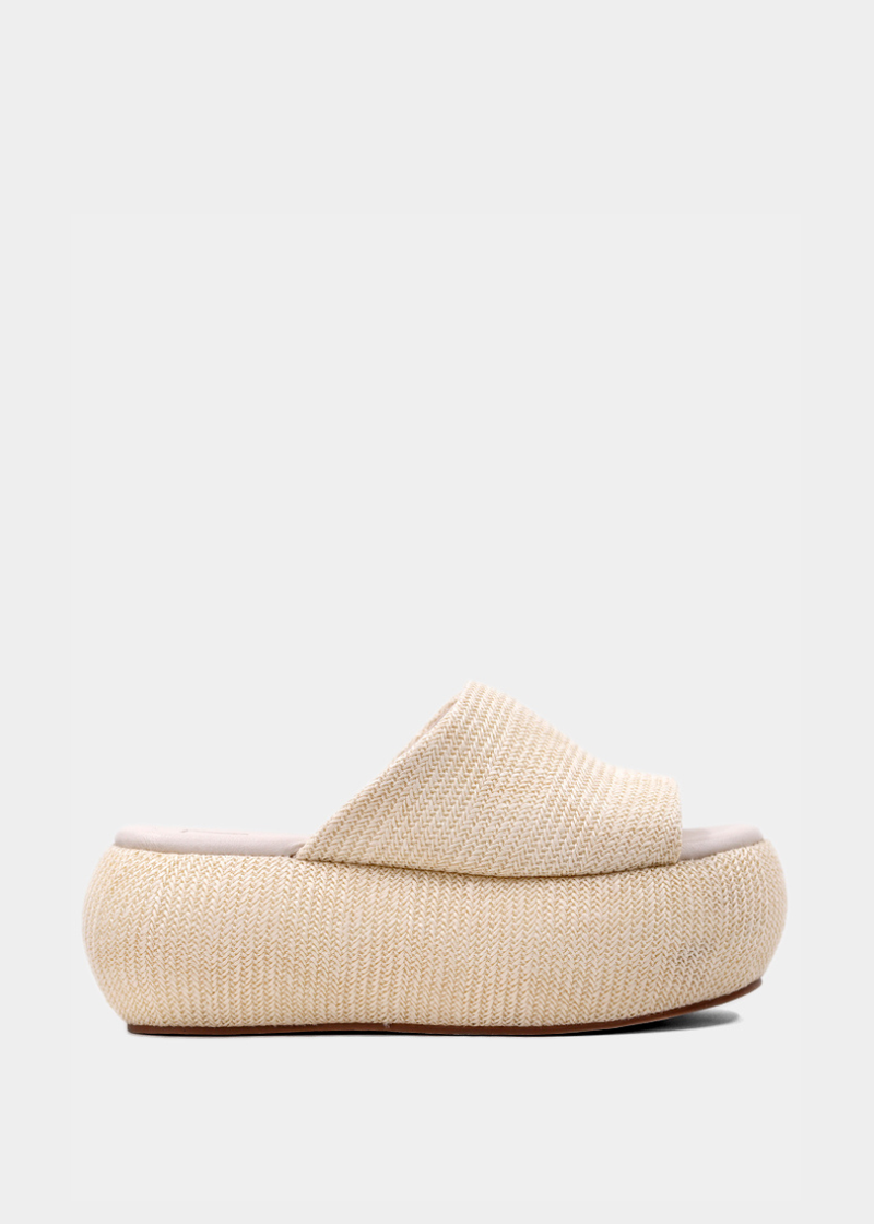 Meet ILANA in bone: the ideal wedge that combines style and comfort. Made from luxurious woven fabric in soft taupe, this shoe adds sophistication to any outfit. With a rounded platform for stability and a cushioned insole for all-day comfort, Ilana enhances both casual and evening looks. Elevate your wardrobe effortlessly with Ilana in taupe!