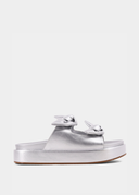 Shimmer, sparkle, and shine! The KIKI MINI in Silver is the perfect pair for little ones who love a little magic in their step. With its metallic faux leather and super cute bows, this sandal adds a touch of fairy-tale charm to any outfit. Plus, the soft platform sole keeps tiny feet comfy all day long. Match with mom for double the sparkle!