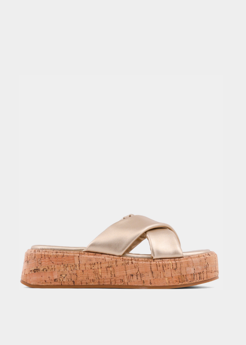 Step into a touch of glam with the LYDIA in gold. The soft metallic faux leather straps add just the right amount of shine, while the cork platform sole brings a relaxed yet stylish vibe. Whether you're dressing up or keeping it casual, these sandals will turn heads.