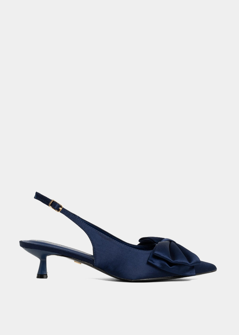 Effortlessly elegant with just the right amount of flair. NORA in Navy is your new go-to slingback kitten heel, featuring a rich satin finish and a delicate oversized bow. Feminine, modern, and wearable from day to night, this style proves that sophistication doesn’t require a sky-high heel.