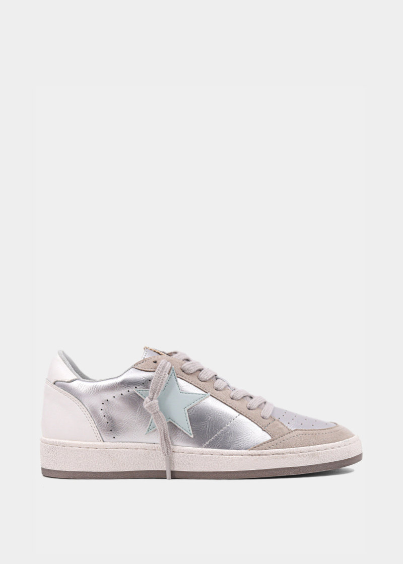 Step up your sneaker game with PAZ in Sterling. Designed with sleek metallic faux leather and soft suede accents, this stylish pair blends fashion-forward vibes with all-day comfort. The eye-catching star detail adds a touch of bold flair, while the neutral tones keep it versatile for any outfit. Slip into the perfect balance of trend and ease, whether you're off duty or on the go!