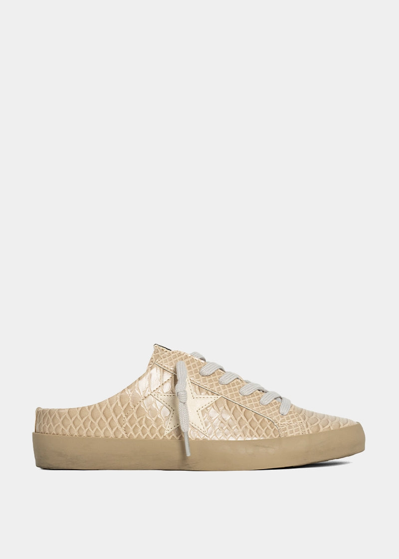 Texture meets neutral perfection. The POLKA Taupe Snake mule is crafted with faux snake-embossed texture and a soft neutral tone that elevates your sneaker game. The tonal star and slip-on design make it an effortless go-to.