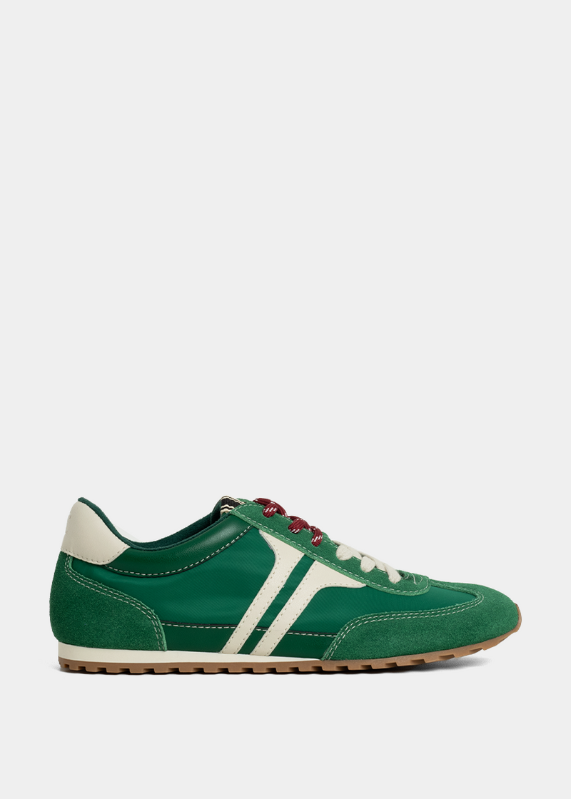 Upper: Kelly green faux suede and synthetic leather with contrast white stripes