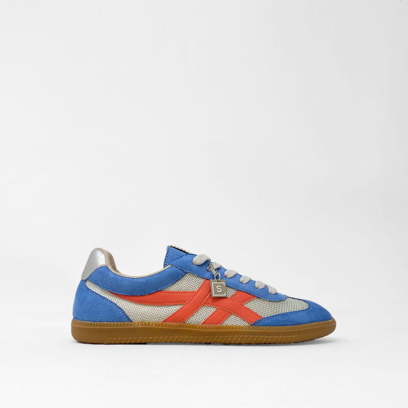 A fresh addition to our collection that redefines casual style with a blend of premium materials, comfort, and modern design. SASHA features a breathable mesh upper, overlaid with bold, rich blue suede accents that add a pop of color and texture. The salmon-colored leather stripe along the side adds a distinct touch, combining classic athletic styling with contemporary flair. A durable gum rubber sole provides excellent grip and flexibility, perfect for all-day wear. Complete with a cushioned insole and a soft inner lining, the SASHA delivers both comfort and fashion, making it an ideal choice for those who value both quality and style in their footwear.