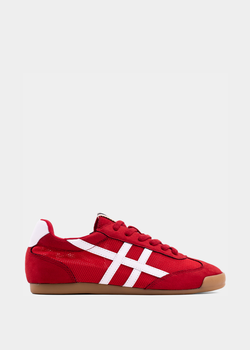 Old-school sporty meets modern chic with the SEDONA in Red. Luxe faux suede, crisp white accents, and breathable mesh make this sneaker an instant head-turner. The gum sole gives it a vintage edge, while the S-charm keychain adds that signature SHUSHOP touch. Pair it with anything, and let the bold red do the work.