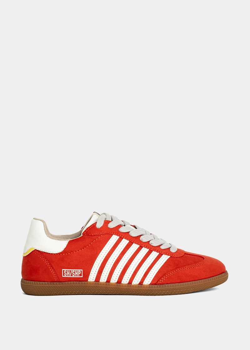 The sneaker that commands attention. STEVIE in Coral Suede delivers a burst of vibrant energy with its bold red hue, vintage stripe detail, and sporty silhouette. Made for days when your outfit needs a little extra fire, this retro-cool design pairs just as effortlessly with denim as it does with flowy dresses and cargos. Style meets attitude-without trying too hard.