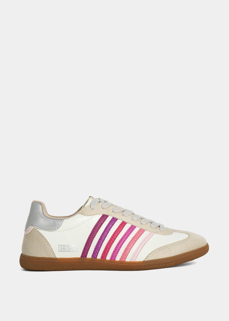 Pop, fizz, style. STEVIE in Pink Multi takes the retro sport sneaker and splashes it with a cocktail of fuchsia, blush, and magenta for a feminine twist on vintage cool. With a creamy white base, suede accents, and eye-catching ombré stripes, this sneaker brings playful energy to your everyday looks. Wear it when you're in the mood to be comfy, but make it fashion.