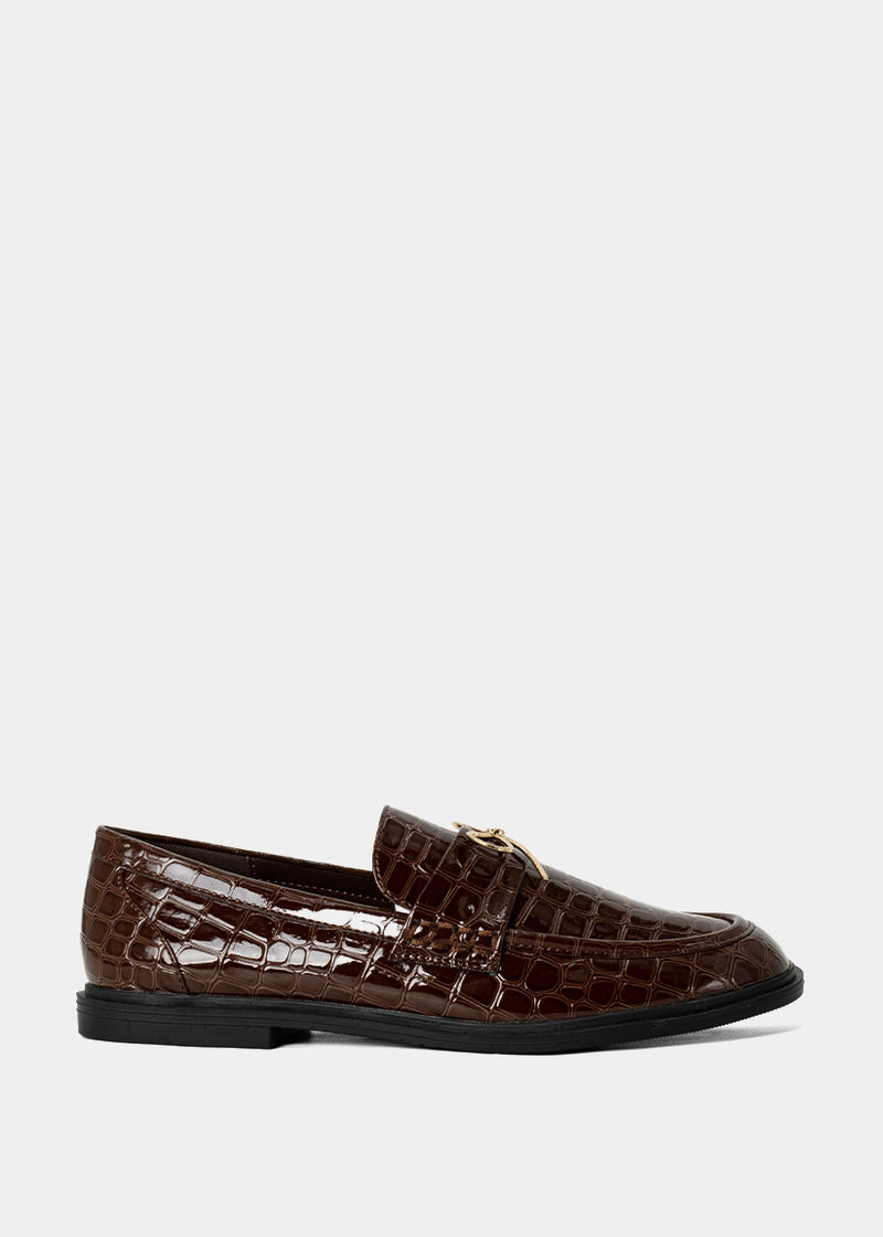 Polish meets edge in the TOULOUSE loafer. This rich brown croc-embossed style features a glossy finish, modern square toe, and bold gold hardware for a standout take on the classic loafer. Whether you're heading to work or dressing up your weekend denim, TOULOUSE gives you effortless style with a confident twist.